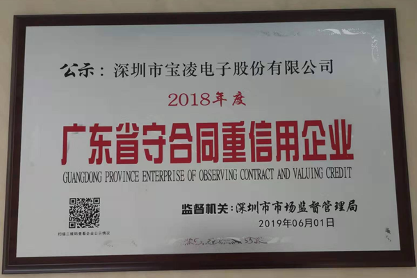 近期, 寶凌公司被深圳市市場(chǎng)監(jiān)督管理局授予2018年度“廣東省守合同重信用企業(yè)”稱號(hào),這是繼獲取“國(guó)家級(jí)高新技術(shù)企業(yè)”資質(zhì)后,寶凌公司獲取的又一高含金量的榮譽(yù)。