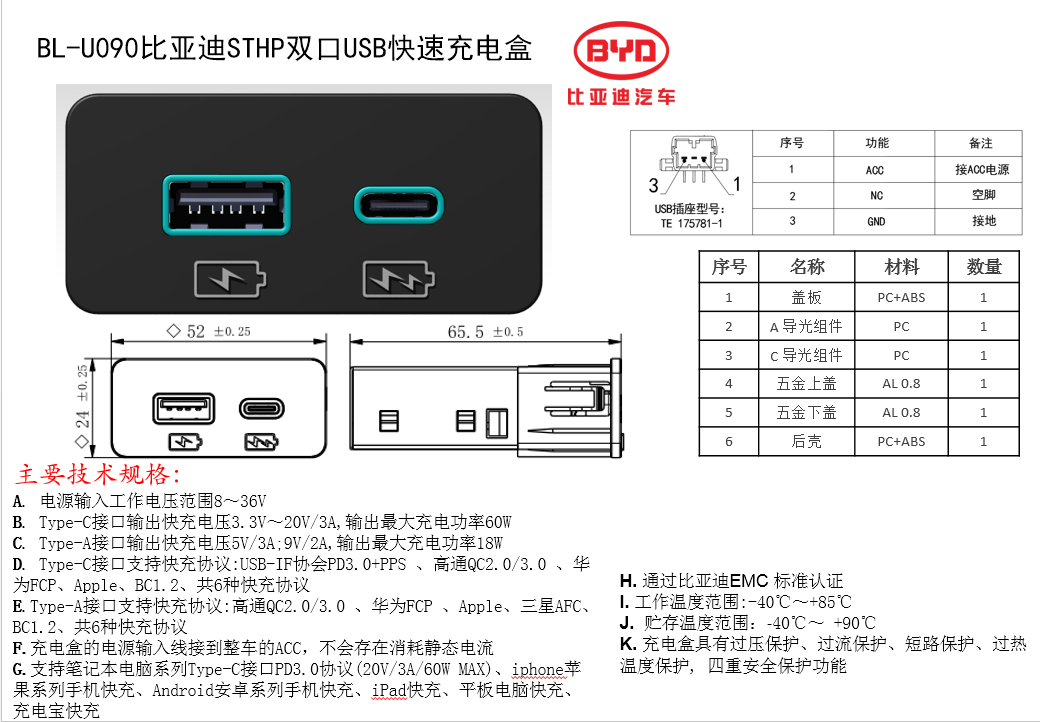E.Type-A接口支持快充協(xié)議:高通QC2.0/3.0 、華為FCP 、Apple、三星AFC、 BC1.2、共6種快充協(xié)議